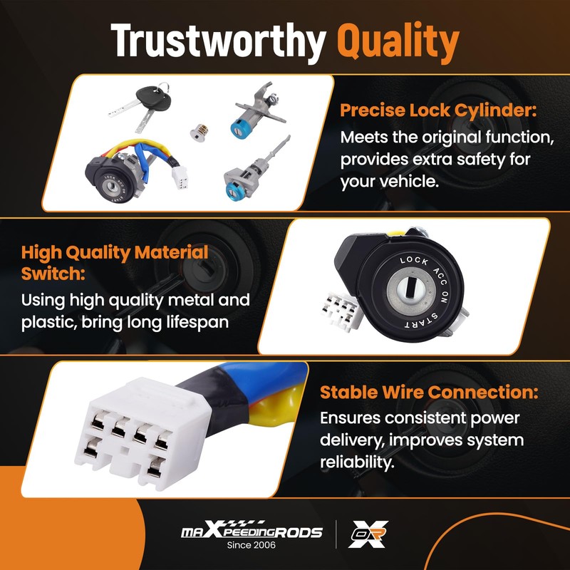 • Comprehensive Package: Includes 1 Ignition Switch, 1 Trunk Lock, 1 Front Left Door Lock, 1 Glove Box Lock, and 2 Universal Keys(applicable to the above three types of lock cylinders)