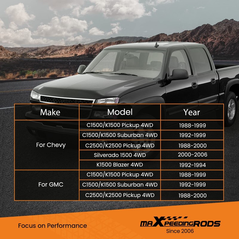 - Fitment:For Chevy C1500/K1500 Pickup 4WD 1988-1999;For Chevy C1500/K1500 Suburban 4WD 1992-1999;For Chevy C2500/K2500 Pickup 4WD 1988-2000;For Chevy C2500/K2500 Suburban 4WD 1992-1999