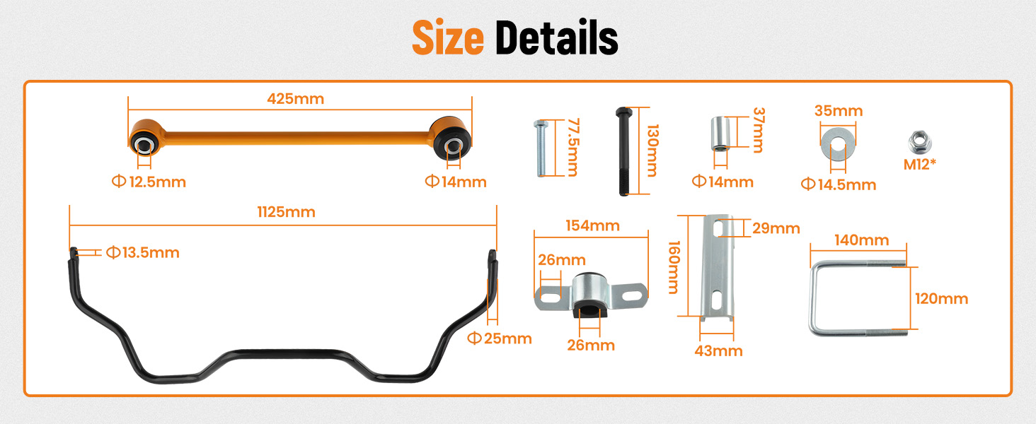 - Other Part Number: sway bar kit with end links, anti-roll bar kit drop links