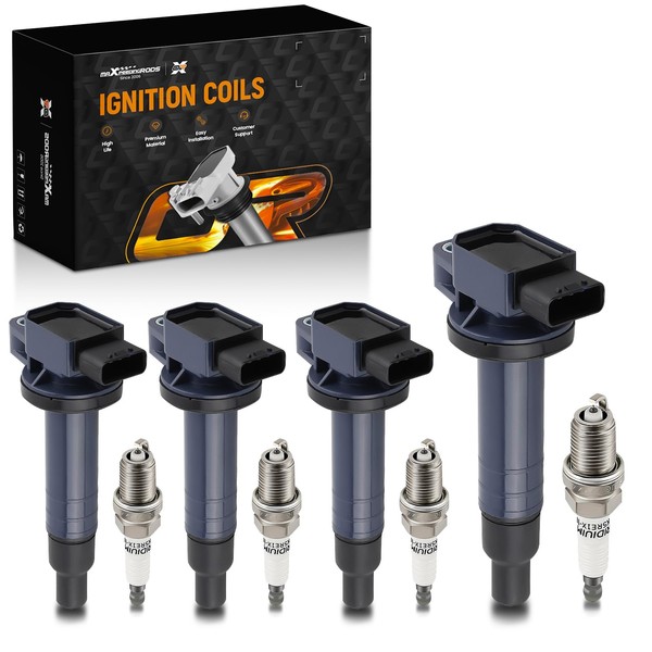 maXpeedingrods UF316 Set of 4 Ignition Coil Pack and Iridium Spark Plugs Fit for Toyota Echo Prius Yaris L4 1.5L 2000-2018, Ignition Coil Kit Replaces 9008019021 9091902240 9091902265