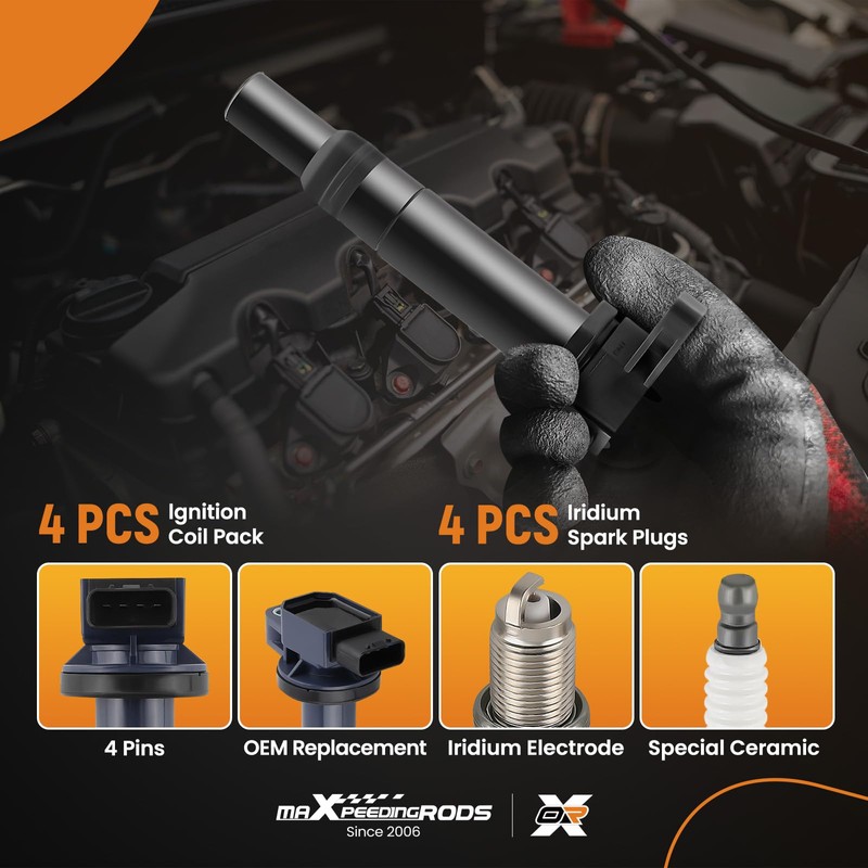 - Package Include: Set of 4 Ignition Coil Pack and 4PCS Spark Plugs. Premium packaging and foam cotton effectively protect the product. Our products undergo rigorous quality control processes to ensure their performance and reliability meet the standards