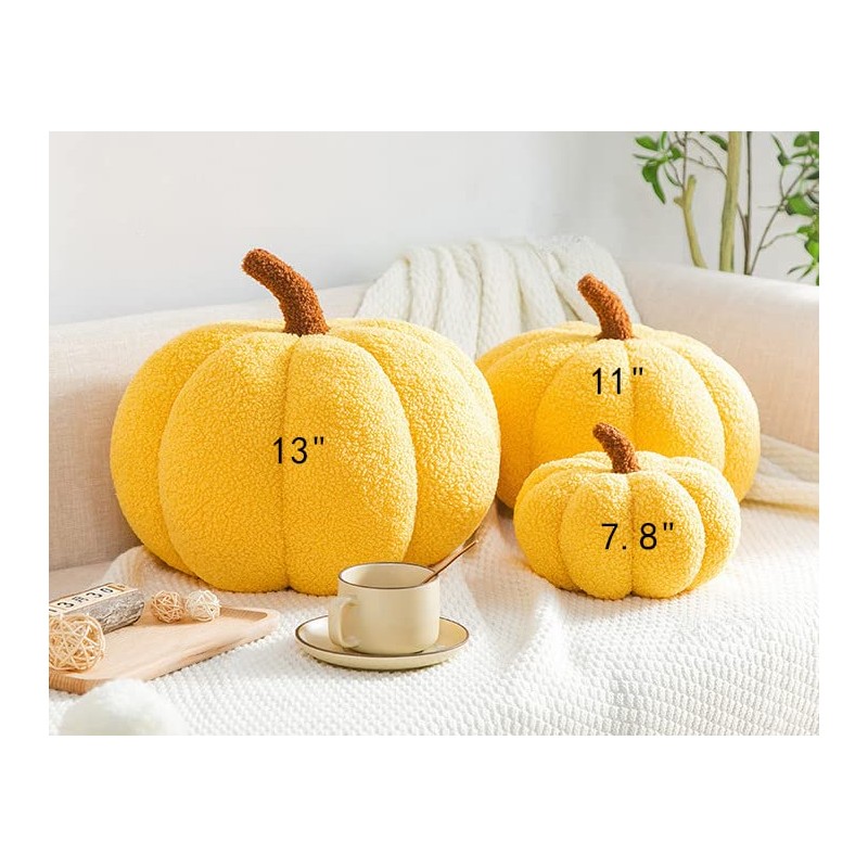 - Cute simulated pumpkin pillow, super soft teddy plush, fun pumpkin shaped 3D pillow with fine polyester velvet surface, full of rich and fluffy premium polyester fiberfill. It is very soft, comfortable, warm, shapeless and non-shapeless.