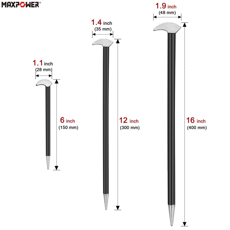 - MAXPOWER Roll head heel pry bar set included 6" 12" 16", easy to use