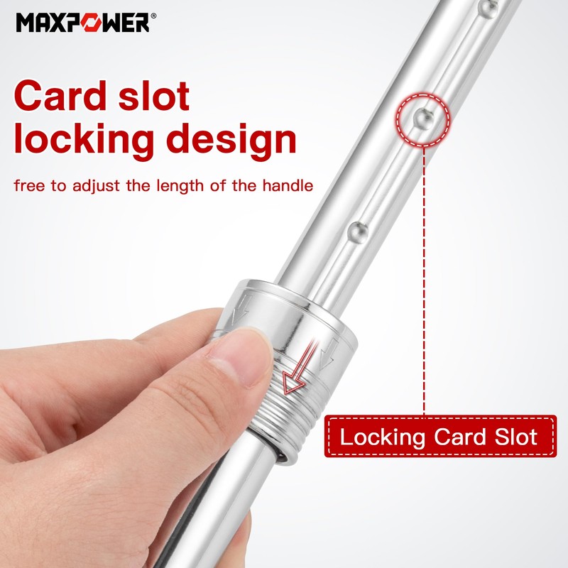 - Extendable Ratchet Handle: The 1/2” drive ratchet handle extends from 10.8-inch to 16.4-inch, 5-gear locking slot that allows you freely to adjust the length of the handle you need