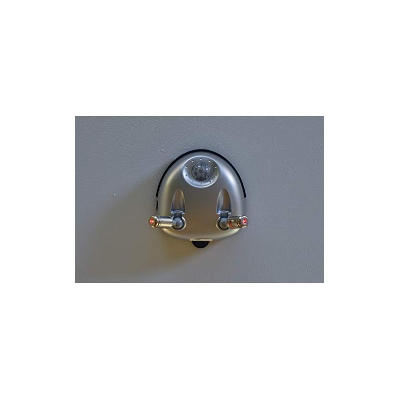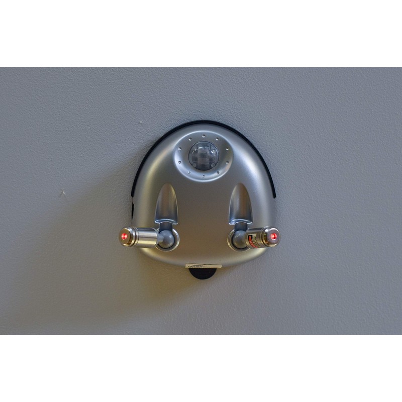- Motion-activated dual lasers and LED light turn on upon approach from up to 10 feet away