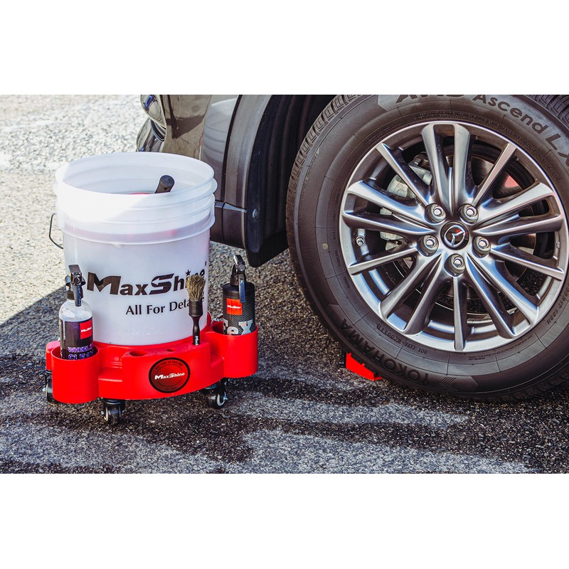 Maxshine Rolling Bucket Dolly (Red) – Heavy Duty Rolling Dolly for Car Wash with 5 Wheels, 2 Locking casters, Slots for car Cleaning compounds, and Detailing Brushes, Great car wash Caddy for You.
