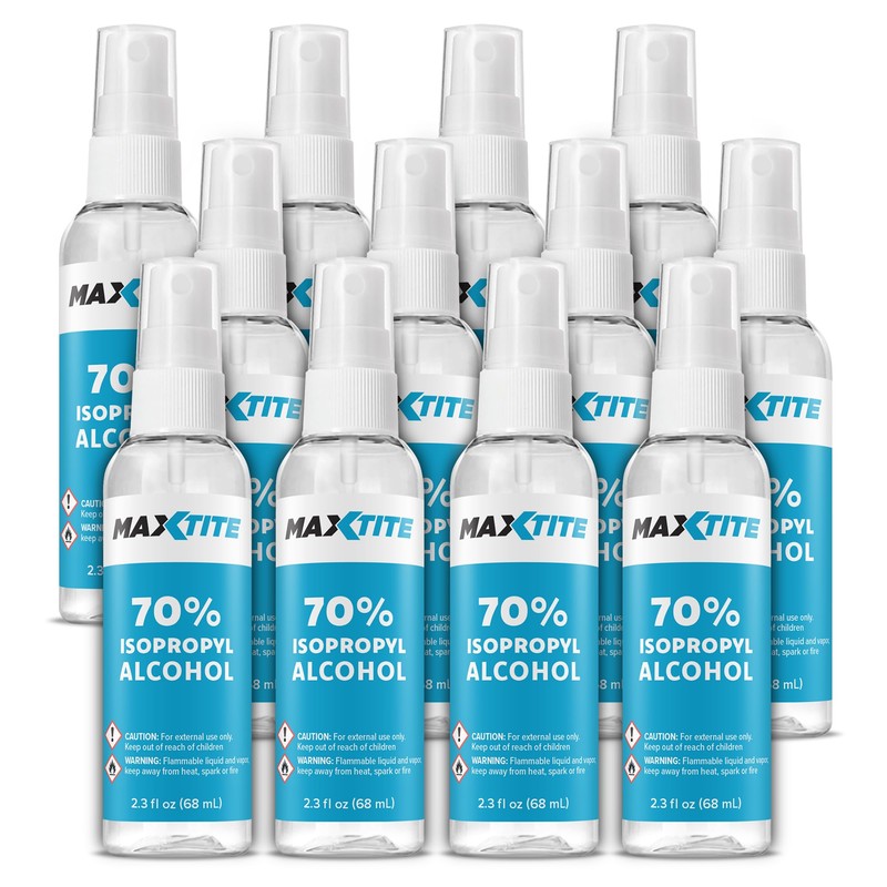 MaxTite 70% Isopropyl Alcohol - 2.3 fl oz Spray, 12 Pack - Made in The USA