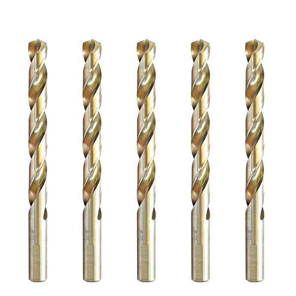 MAXTOOL 5/16" 5PCs Identical Jobber Length Drill Bits HSS M2 Twist Drill Bits Fully Ground Bright Straight Shank with 3-Flat; JBF02W13R20E5