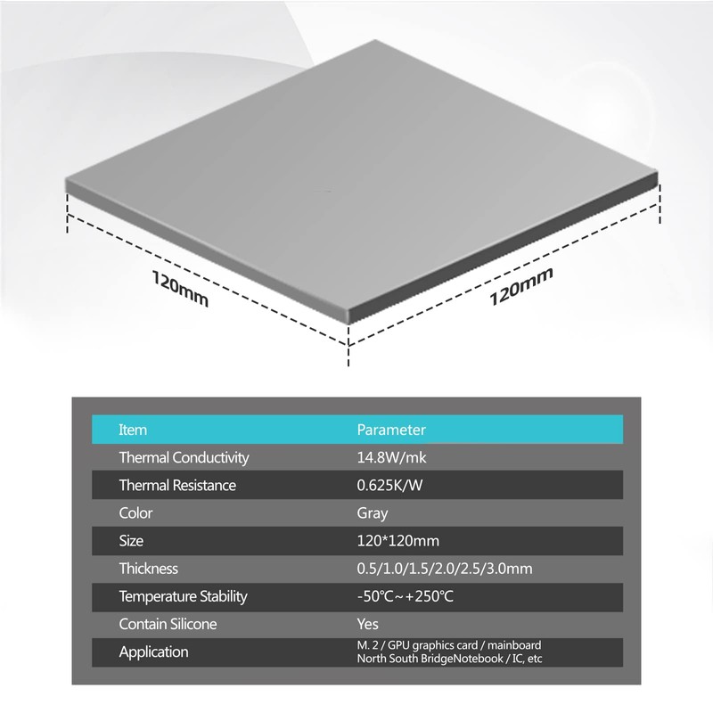 - Convenient & Affordable - Dimension 120x120x1.0mm, this thermal pads can be cut freely according to your needs. One pieces of 1.0mm/set can meet different needs.