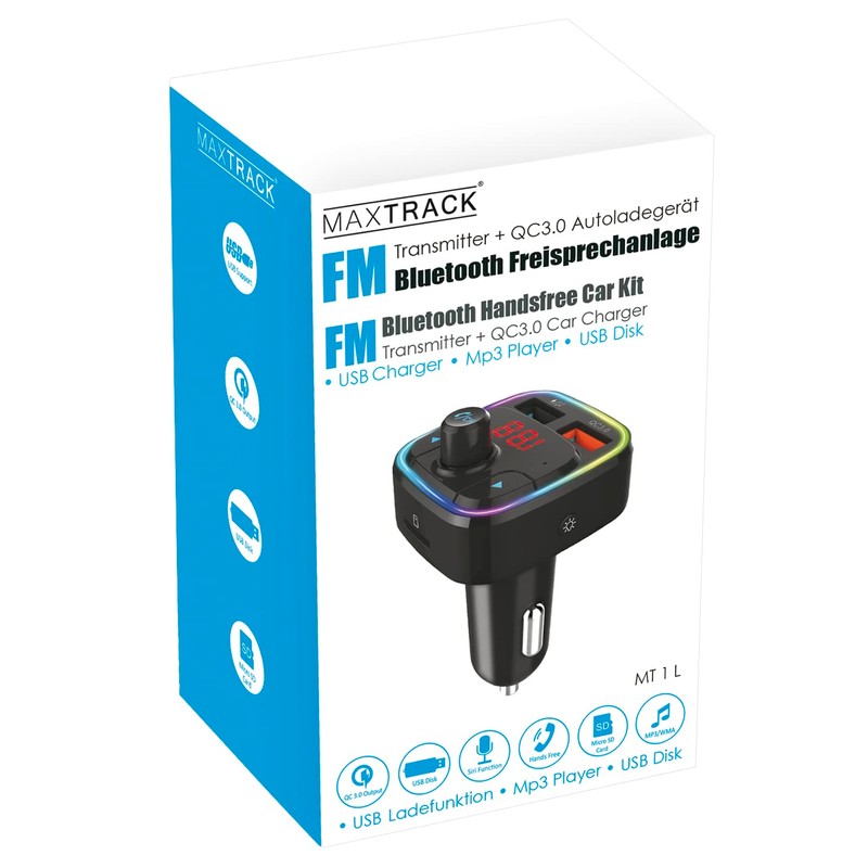 - Box contents: the Maxtrack MT1L Bluetooth FM transmitter offers 1 FM Bluetooth hands-free kit including instruction manual (English language not guaranteed).