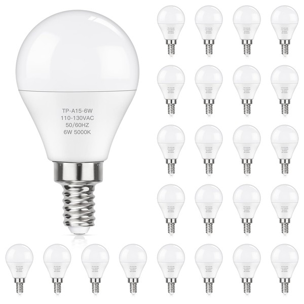 MAXvolador MAXvolador E12 LED 60W Equivalent Daylight White 5000K Ceiling Fan Bulbs, 600LM CRI 85+ Small Base Candelabra Bulbs, 6W Non-Dimmable, Pack of 24