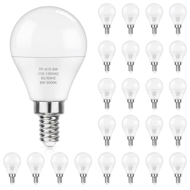 Good Choice for the Decorative Lighting! Our 6W ceiling fan bulbs perfectly combines aesthetic with modern technology, illuminating any surroundings in household or commercial areas. Its very suitable to decorate the house and set the mood for the room. These E12 LED candelabra bulbs are ideal for chandelier, ceiling fan, wall sconce, pendant light in living room, dining room, hallway, utility room, entryway, porch, foyer and so on. Why Choose Our Candelabra Base Light Bulbs? Saving Money -- Replace 60W equivalent by 6W. High CRI 85+ -- Show true color of your room. 5000K Daylight White -- bright and natural. No flicker -- Protect for your eyesight. Package Includes: 24 x 6W E12 ceiling fan bulbs 5000K (Non-Dimmable, please DO NOT use it with dimmer switch or dimmable socket.) FAQ: Q: Are these E12 LED LIight Bulbs dimmable?A: No, these bulbs are NON-DIMMABLE. DO NOT use with dimmer switch or dimmable socket.