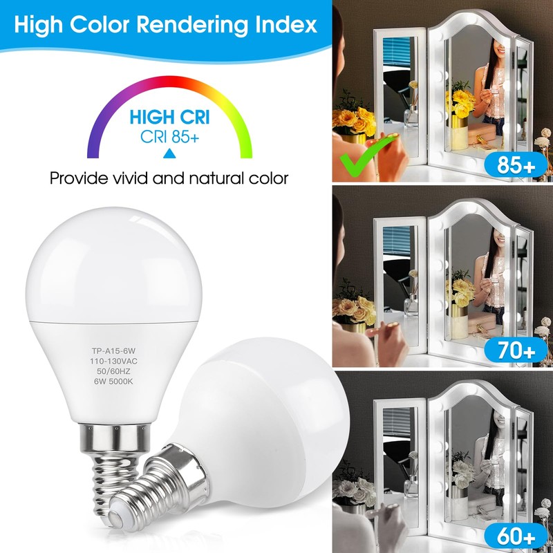 - Energy Efficient: Our E12 LED Bulbs are designed to be exceptionally energy-efficient, and only 6W LED can replace the 60W incandescent bulbs. With advanced LED technology, our LED ceiling fan light bulbs consume significantly less electricity compared to traditional incandescent bulbs, which not only brightens your space but also reduces the electricity bill. Making them a perfect choice for your lighting needs.