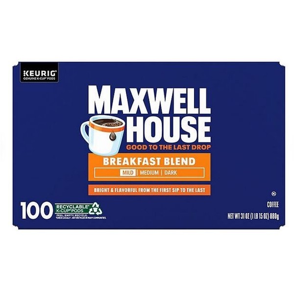 Maxwell House Breakfast Blend Light Roast K Cup Coffee Pods, 100 ct.