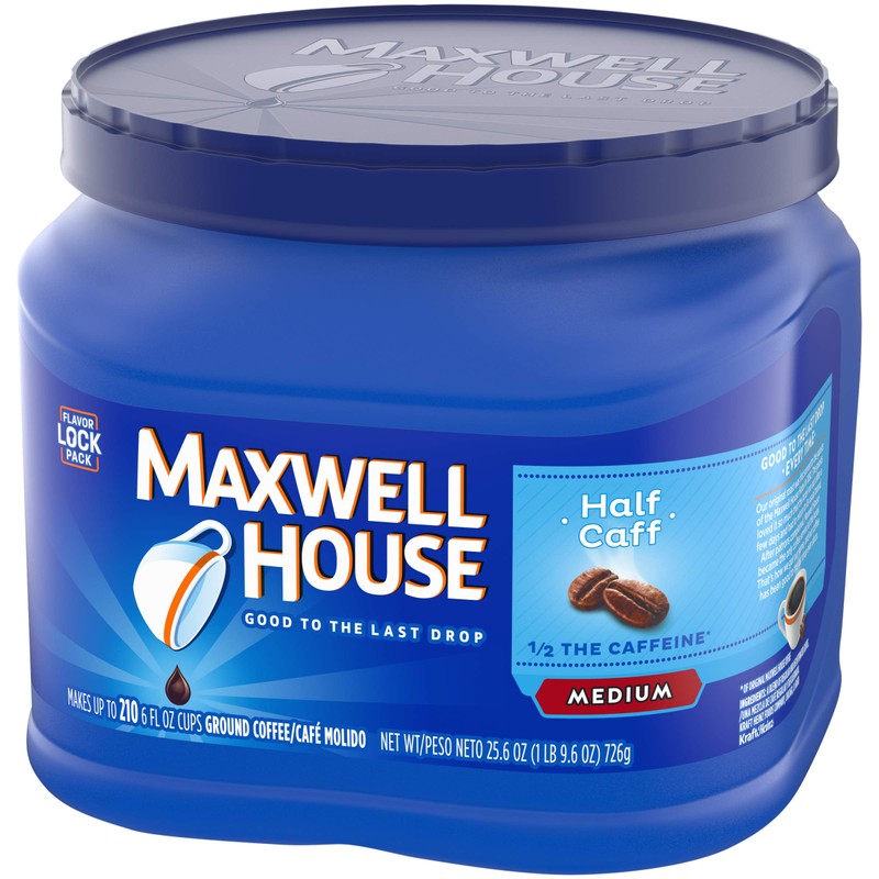 - One 25.6 oz. canister of Maxwell House Medium Roast Half Caff Ground Coffee