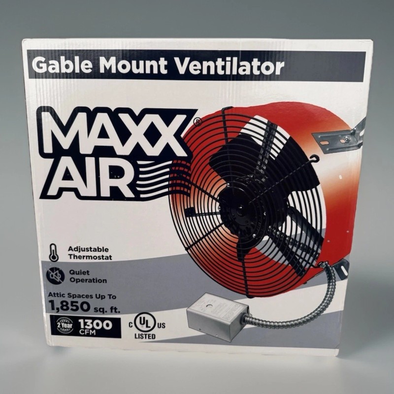 Maxx Air Electric Attic Fan is a powerful ventilation solution for your home. With a 1300-CFM motor, it efficiently moves air out of your attic and covers up to 1,850 sqft, preventing excess heat and moisture buildup. The fan is mill-powered and easy to install, with gable mounting for a sleek and seamless look.