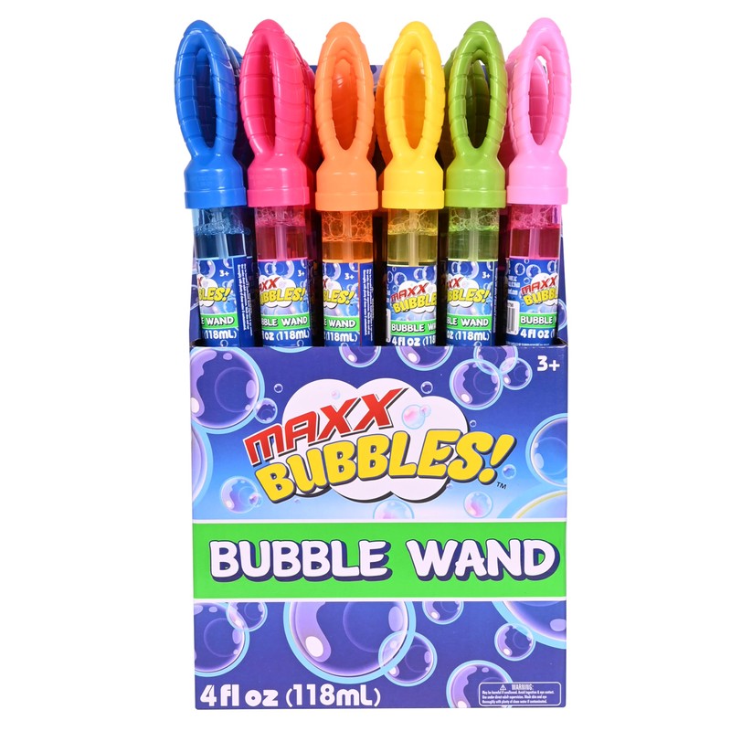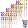 - 24 BUBBLE WANDS: 24 pack of assorted bubble wands in a variety of different colors: blue, green, purple, orange, pink and yellow.