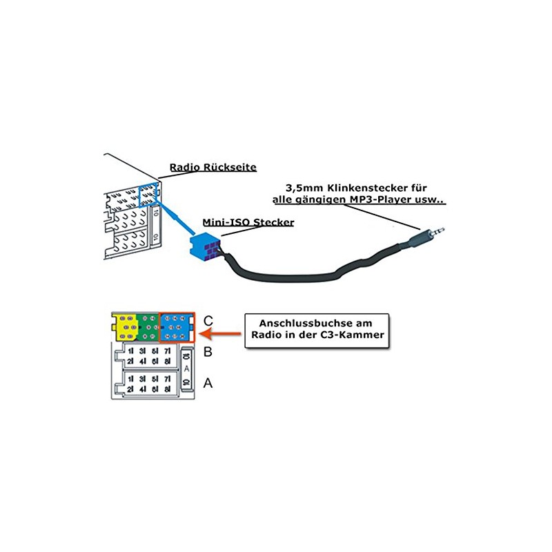 - Suitable for all Becker/Blaupunkt/VDO car radios with mini ISO plug 8 pin