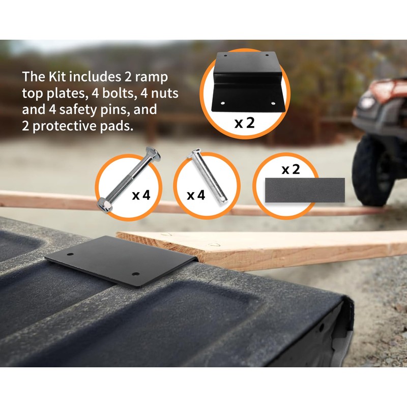 - The Kit includes 2 ramp top plates, 4 bolts, 4 nuts and 4 safety pins, and 2 protective pads