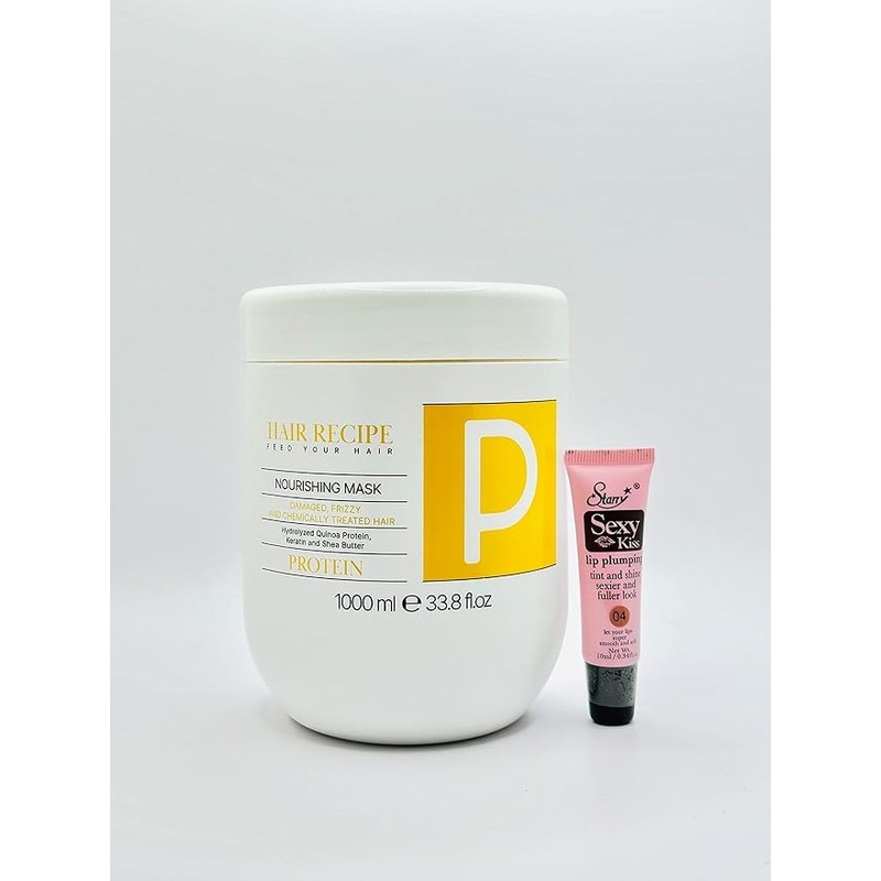 Maxy Look Hair Recipe Feed Your Hair Mask 1000 ml /33.8 fl oz - Free Lip Plumping Gloss 10ml (Protein-Nourishing Mask)