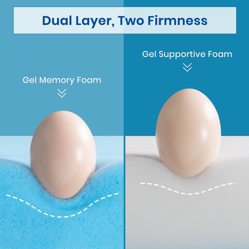 - Dual Layer & Firmness: This king mattress topper adopted two different firmness high-density gel memory foams, you can flip it over to have a different firmness or make it suitable for different people.