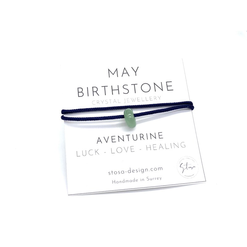 - This bracelet is perfect for May birthday gifts! I have made it with a really robust sailing rope which is around 2mm wide, this rope can be worn daily and is showerproof as well. Added to it is a lovely Aventurine rondelle bead, which is 10mm wide.