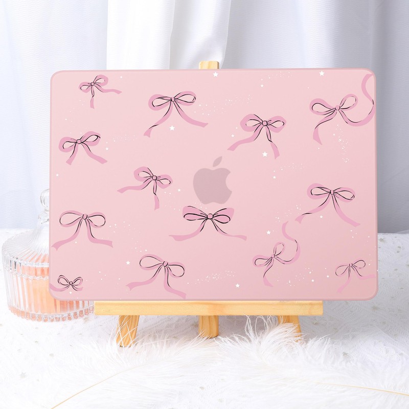 May Chen Compatible with 2024/2023 MacBook Air 15 inch M3 A3114 / M2 A2941 Case, Printed Plastic Hard Shell Case for MacBook Air 15.3 Liquid Retina Diaply Touch ID, Chalk Pink Bow