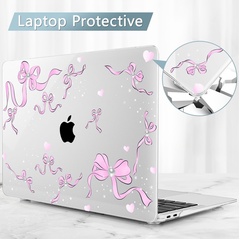 May Chen Compatible with MacBook Air 13 inch Case (Models A1369 & A1466, Older Version 2010-2017 Release), Plastic Hard Shell Case with Keyboard Cover & Screen Protector, Pearl Bow