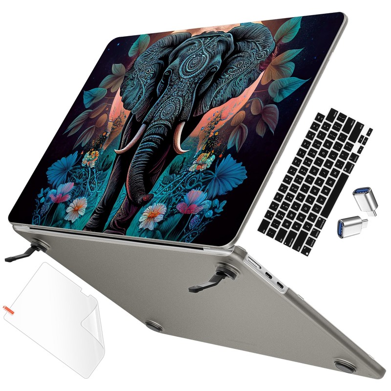 May Chen Compatible with MacBook Air 15 inch Case A3114 M3 A2941 M2 Chip 2024 2023 Release, Sturdy Protection Finish Hard Shell Case Cover with Fold Kickstand & Keyboard Cover, Elephant