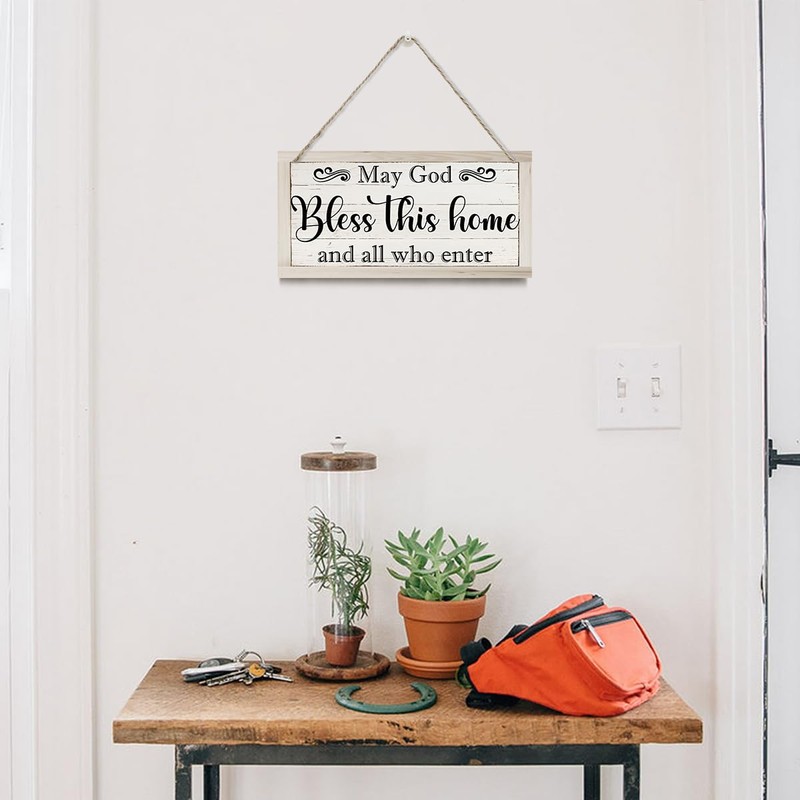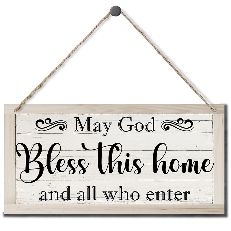 May God Bless This Home Decor Sign, Printed Wood Wall Art Sign, God Bless Sign, Home Signs Decor, Hanging Wood Sign Home Decor, Rustic Farmhouse Wood Sign Decor Wall Art, Christian Gifts 12x6 in C