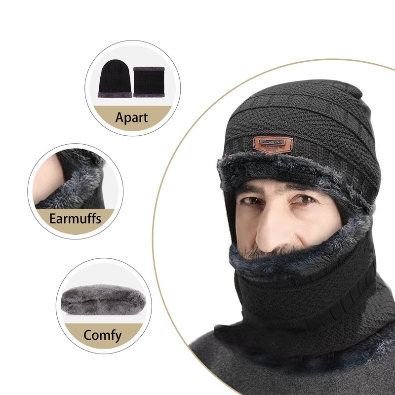 - 2-in-1 winter set: winter hat scarf set. 2-in-1 winter outdoor warmth set, this perfect suit completely covers your ears and neck, protects your ears or neck from damage in winter temperatures of up to -10°C, perfect for outdoor activities and everyday use.