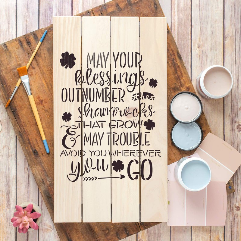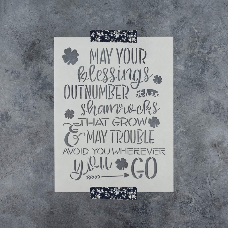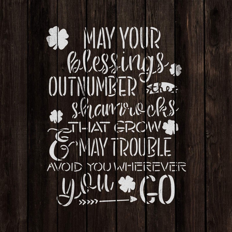 May Your Blessings Shamrock St Patricks Stencil - Reusable Stencils for Painting - Create DIY May Your Blessings Shamrock St Patricks Home Decor