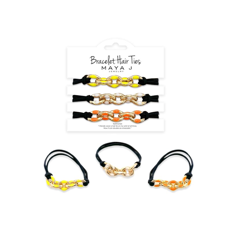 Maya J Lazos Para El Cabello De Pulsera Con Elástico Negro Beige, Se Ve Lindo En Tu Muñeca Y Genial En Tu Cabello De Naranja