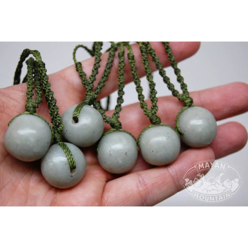 Mayan Mountain LARGE HANDMADE ROUND BEAD GUATEMALA JADEITE JADE NECKLACE PENDANT MACRAME