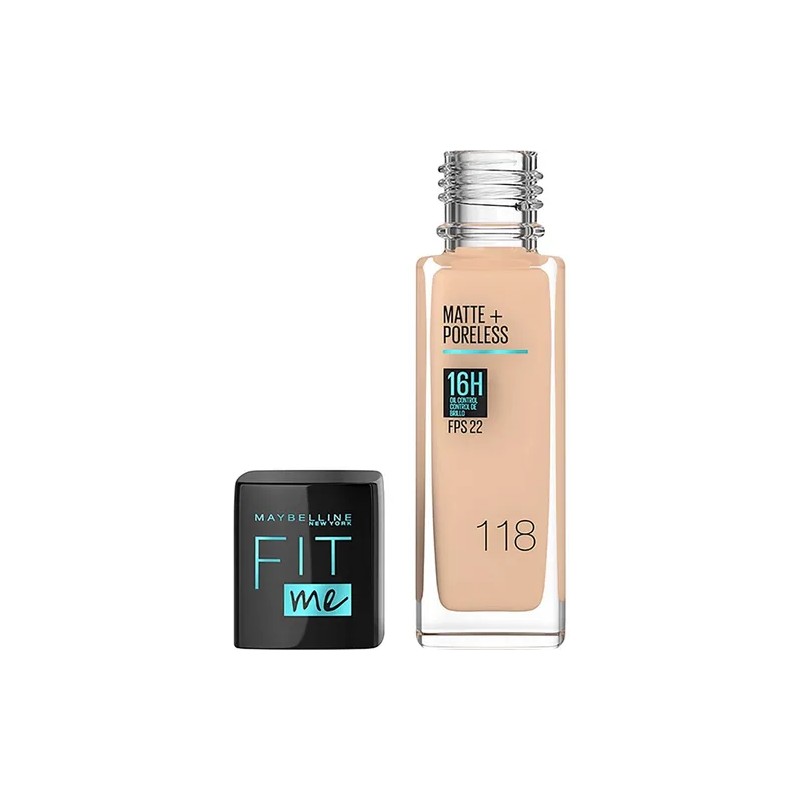 MAYBELLINE Base Maquillaje Fit Me Matte Rich Tan + Poreless 30ml, matifica y controla el brillo, tiene FPS 22