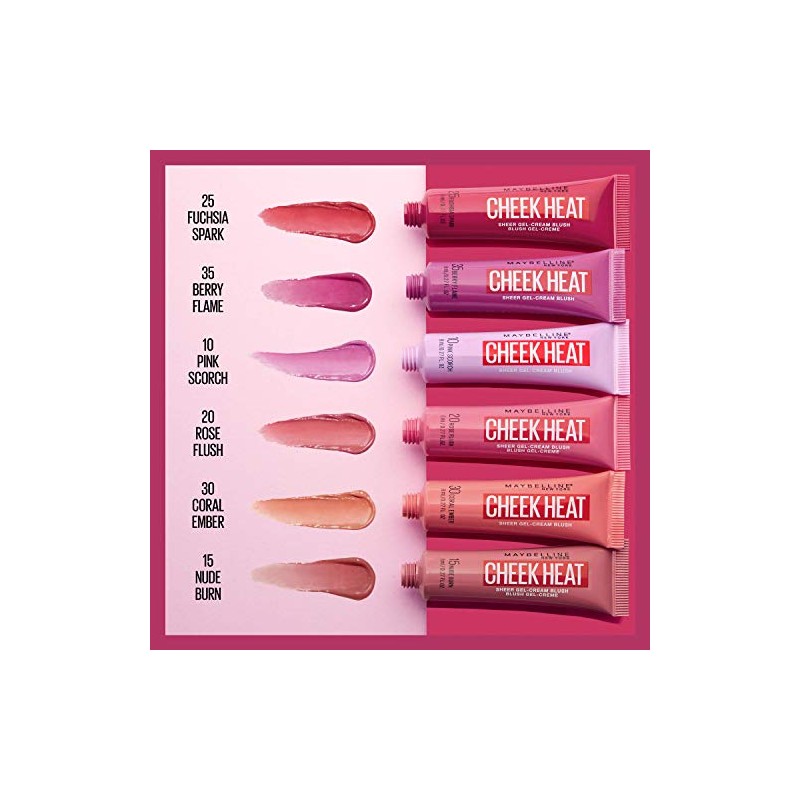 Maybelline Cheek Heat Gel-Cream Blush Makeup, lightweight, Breathable Feel, Sheer Flush Of Color, Natural-Looking, Dewy Finish, Oil-Free, Rose Flush, 1 Count