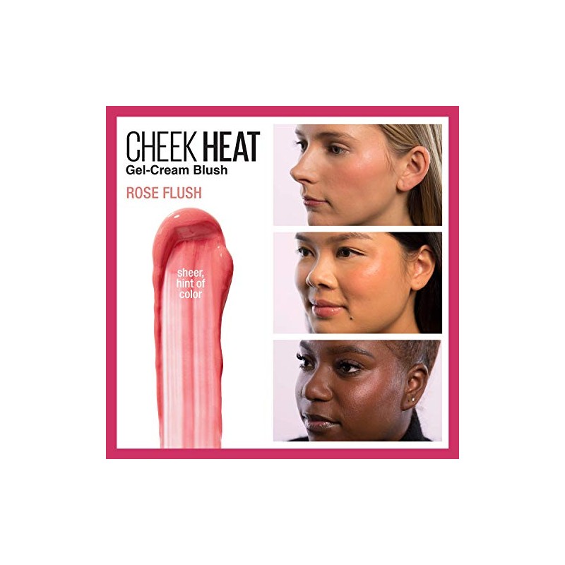Maybelline Cheek Heat Gel-Cream Blush Makeup, lightweight, Breathable Feel, Sheer Flush Of Color, Natural-Looking, Dewy Finish, Oil-Free, Rose Flush, 1 Count