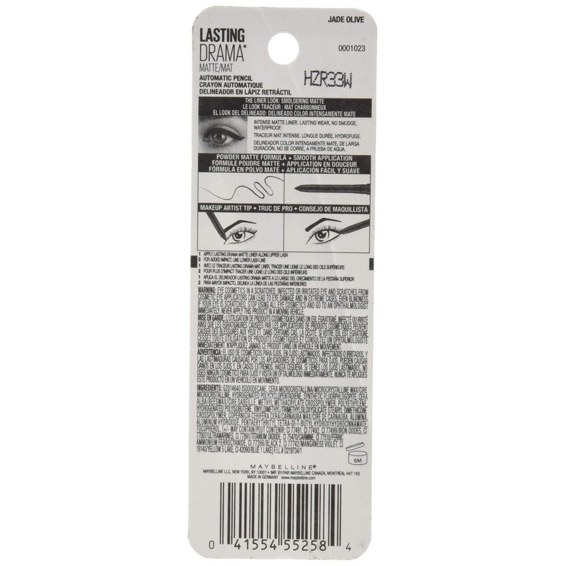 - Long Lasting: The Maybelline Lasting Drama Matte Automatic Pencil provides long lasting wear for your eyes.