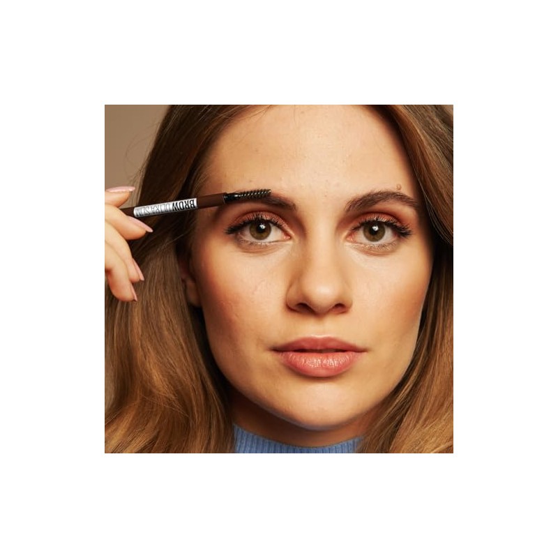 - Brow pencil with integrated brush for blonde and brown hair, with ultra-fine tip (1.5 mm) for tightening and filling the eyebrows