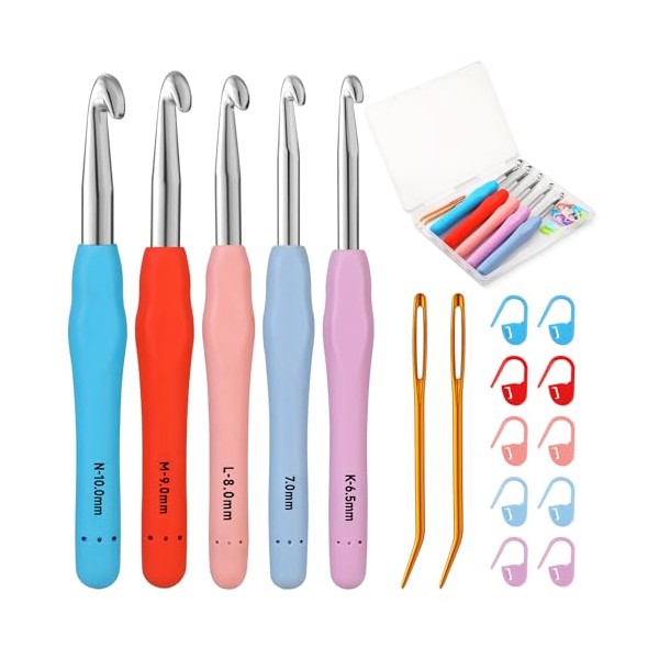 Mayboos 5 Sizes Crochet Hook Set, Large Crochet Hooks Yarn Needle Kits Knitting Needles with Ergonomic Handles for Beginners 6.5mm 7.0mm 8.0m