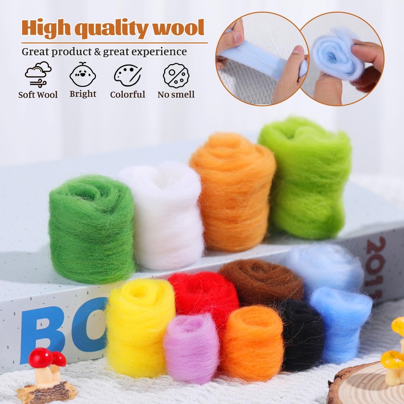 - High-Quality Wool: Our needle felt painting provides a wool material package for making needle felt. the wool of beginner needle felting kit is made of high-quality wool that is pollution-free, odor-free, and free of impurities. You can safely make beautiful pastoral style needle felt products