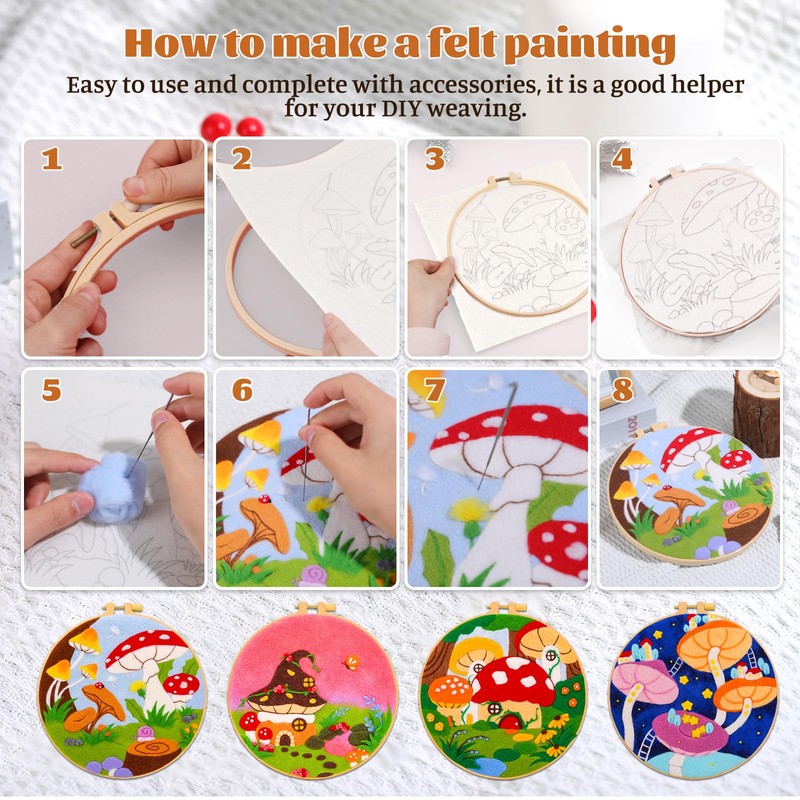 - Great Present: The lovely pastoral style wool felt painting kits is a perfect present for friends, family, and partners. Needle felt crafts kit can be used as a handmade activity to enhance mutual feelings. This unique hand felting activity will stimulate your hands-on ability