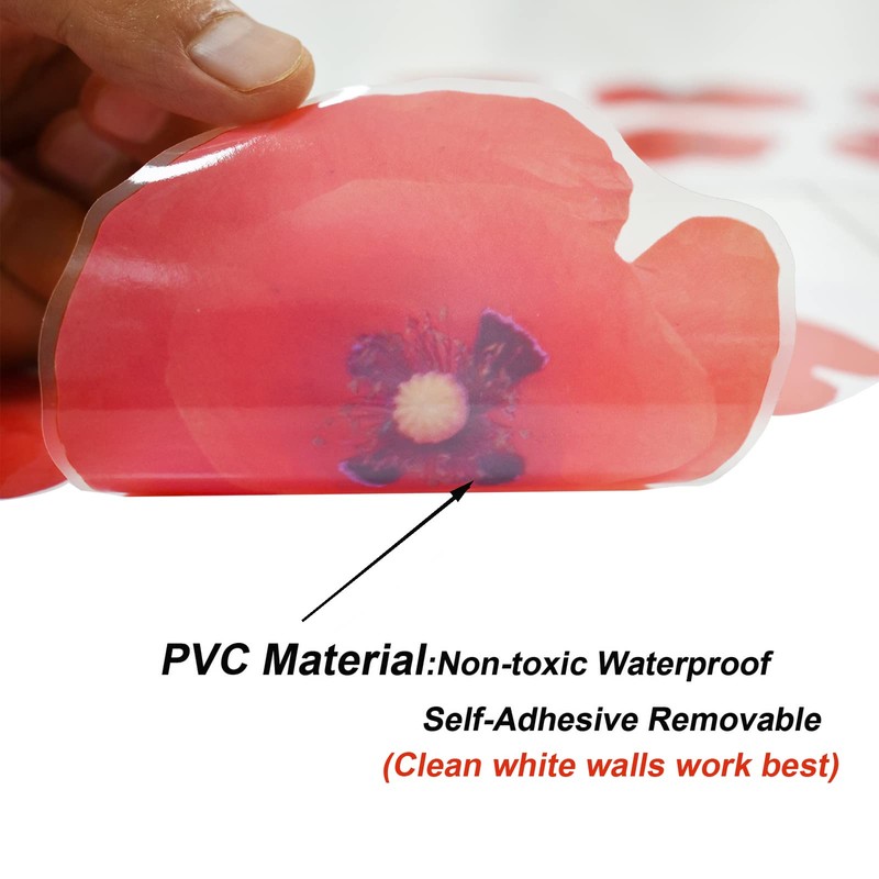 - Pack of 2 sheets, you will get a total of 44 stickers(16 poppy flower wall Stickers,16 poppy stems wall stickers,12 petal wall stickers).Recommended finished size:55 x 24inch(140 x 60cm), you also can DIY it freely.