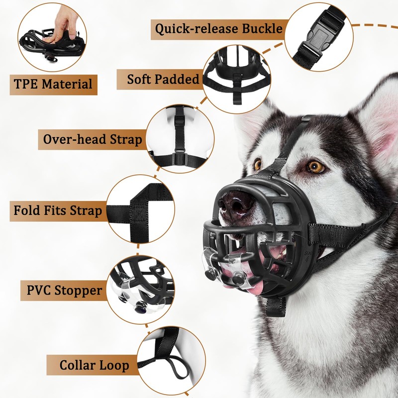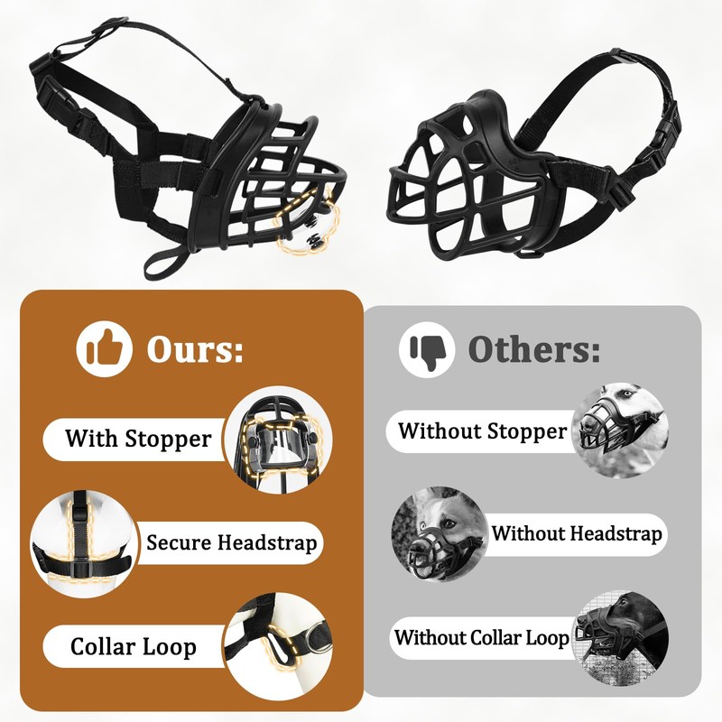 - Breathable Hollow-out Design: With a hollow basket design, this basket muzzle for large dog allows your dogs to pant freely Even on a hot summer, your dog can still enjoy maximum ventilation while wearing this mussels for dogs Using a comfortable cage muzzle will help your dog feel at ease, enabling them to remain calm and relaxed during Vet visits Besides, this cage muzzle for large dogs also allows your dog to drink and be fed (by removing the stopper)