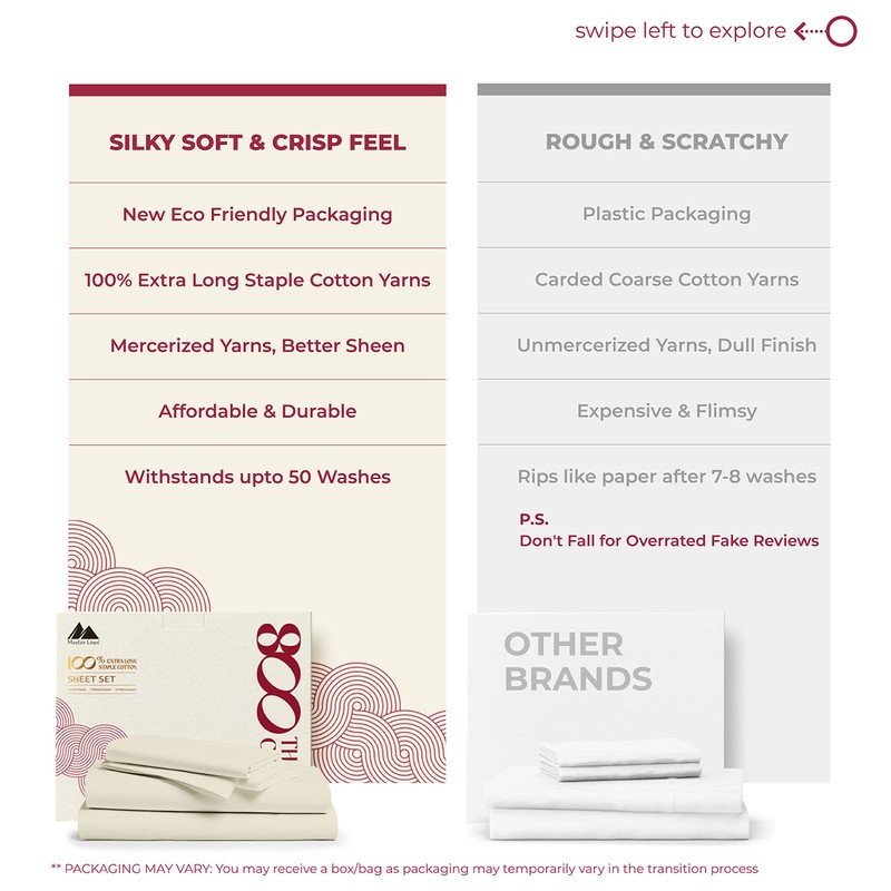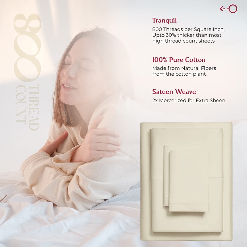 - Not All Cotton Sheet Sets are Created Equal: Some are 30% thicker than average sheets, made from Extra Long Staple Egyptian Cotton for improved softness and durability, and then 2x mercerized for a glossy sheen and silky touch. Yes, we are talking about our Egyptian cotton 800 Thread Count Queen size cotton sheet sets. These premium hotel collection sheets are heavyweight yet thick, cozy yet crisp, breathable and cool, for the best sleep ever