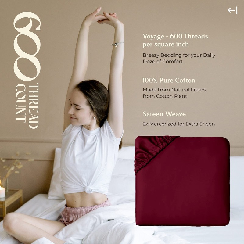 Mayfair Linen Queen Size Fitted Sheet Only - 100% Egyptian Cotton 600 Thread Count Deep Pocket Queen Fitted Sheet, Fitted Sheet Queen Size, Soft Cooling Bottom Sheet, Fits Mattress Upto 18"- Burgundy