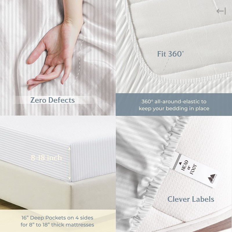 - Deep Pockets Sheets & 360° Elastic to Hug Your Mattress: let’s talk about our fitted sheets now, shall we? Our deep pocket fitted sheets go easily around an adjustable mattress up to 16 inches & the all-around elastic secures the sheet to the mattress. No need for strappers or grippers to keep them in place at night. The smart tags indicate the long and short sides of the full size cotton sheet sets