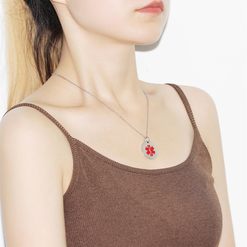- 1. Design: This necklace features the international snake shaped medical logo design and is tailored to meet different medical information needs. It is not only stylish and eye-catching, but also provides important medical information in emergency situations, protecting your safety and health.