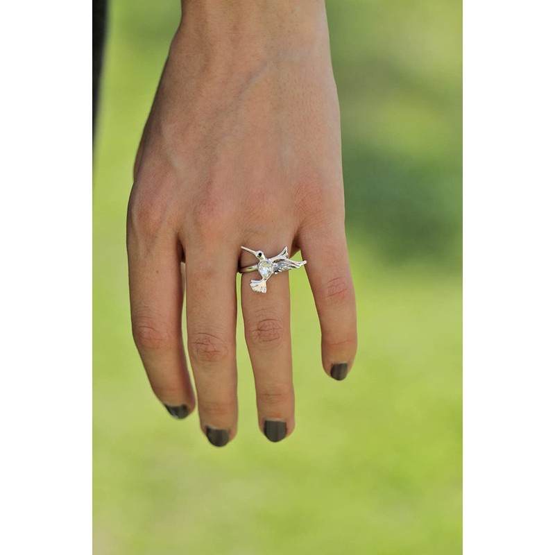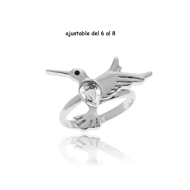 Mayfer | Anillo ajustable para mujer de la colección Colibrí buena suerte, decorado con cristal austriaco traslucido