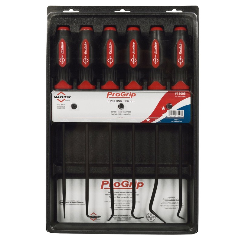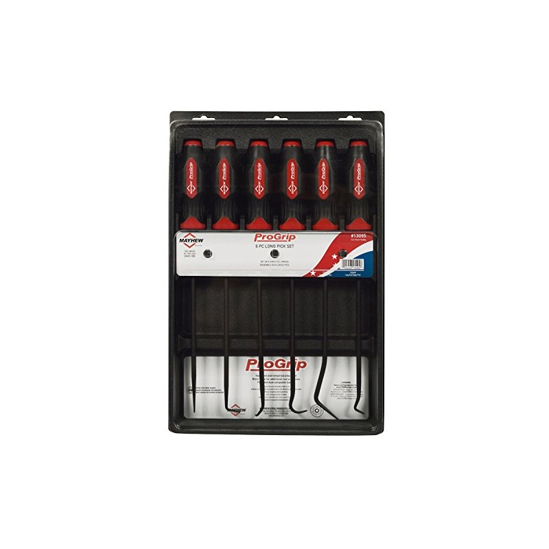 Mayhew Tools 13095 ProGrip 6-Piece Long Pick Set, Black Oxide Finish